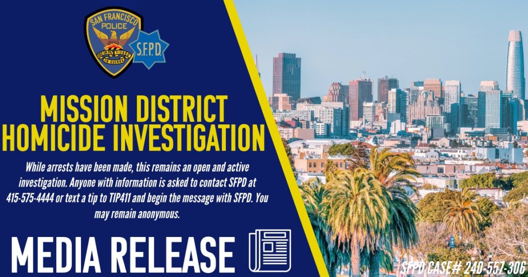 SAN FRANCISCO—On Thursday, September 5, the San Francisco Police Department announced they are investigating a homicide that transpired in the Mission District.